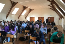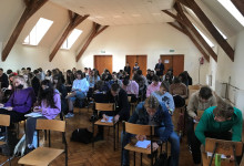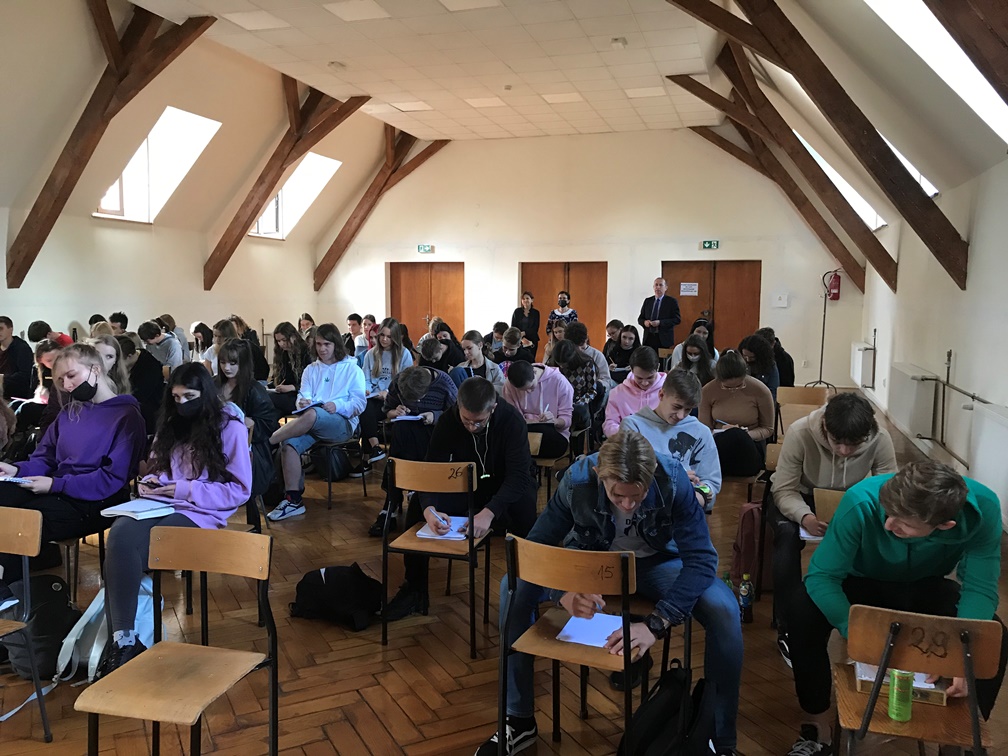 Po części wykładowej nadszedł czas na zastosowanie zasad pisowni polskiej w praktyce. W związku z tym wszyscy zebrani z zapałem przystąpili do napisania V Dyktanda Wrocławskiego prowadzonego przez prof. Jana Miodka.