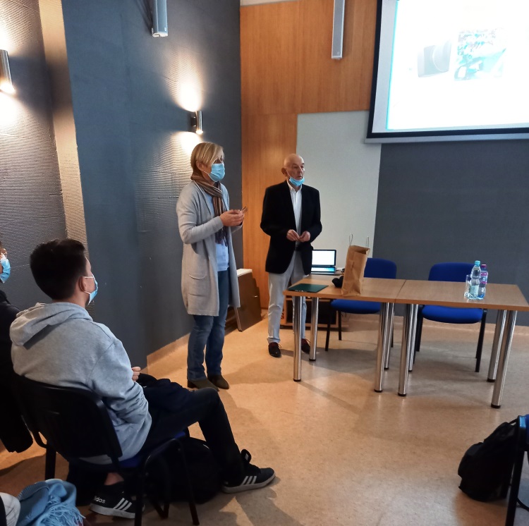 W dniu 26 listopada 2021 klasa IB wzięła udział w zajęciach poszerzających wiedzę o dziennikarstwie, które były prowadzone przez Pana Andrzeja Ostrowskiego - dziennikarza, sprawozdawcę i komentatora sportowego, obecnego wykładowcę uniwersyteckiego. Uczniowie mieli możliwość zadawania pytań na interesujące ich tematy. Dowiedzieli się wiele ciekawych informacji o tym, jak wygląda praca dziennikarza. Poznali techniki przyciągania uwagi widzów oraz otrzymali wiedzę z zakresu manipulacji telewizyjnej. Była to również okazja zapoznania się z wydanymi przez Niego publikacjami, takimi jak: "Dziennikarstwo sportowe", "Telewizyjne imperium sportowe", "Telewizyjna transmisja sportowa czyli Największy teatr świat"