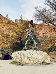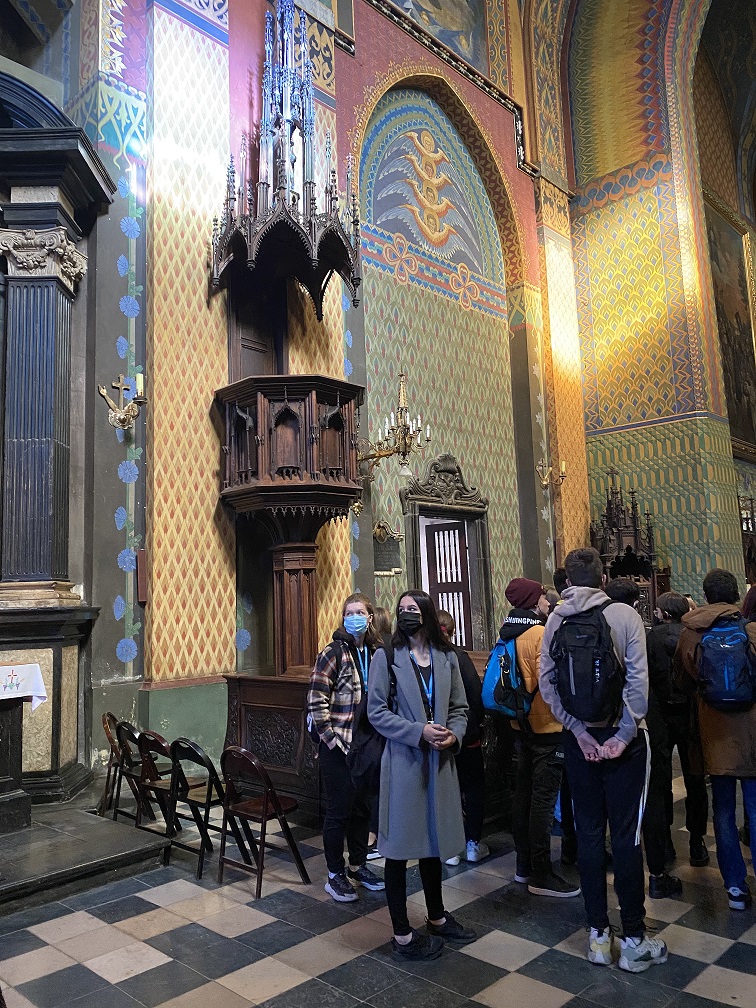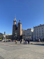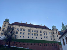 Później przeszliśmy na Kazimierz - dzielnicę Krakowa stanowiącą jeden z jego najważniejszych ośrodków życia kulturalnego, a także miejsce istotne dla wspólnej historii, jaką dzielą Polacy i Żydzi, charakteryzujące się niepowtarzalnym klimatem. Mieliśmy okazję zobaczyć synagogę Remu i znajdujący się przy niej cmentarz. Dowiedzieliśmy się wielu ciekawych faktów dotyczących kultury żydowskiej i judaizmu. Z Kazimierza przeszliśmy do Bazyliki św. Michała Archanioła i św. Stanisława Biskupa, potocznie nazywanej Skałką, gdzie odwiedziliśmy słynną Kryptę Zasłużonych. Nazajutrz wybraliśmy się do muzeum mieszczącego się w podziemiach krakowskiego rynku, a także udaliśmy się do miejsc potocznie uznawanych za największe atrakcje turystyczne Krakowa takich jak: Sukiennice, Kościół Mariacki, Collegium Maius, Bazylika św. Franciszka, Pałac Biskupi i okno papieskie. Wycieczkę zakończyliśmy zwiedzaniem wzgórza wawelskiego i znajdującej się tam bazyliki archikatedralnej, gdzie zobaczyliśmy Dzwon Zygmunta i grobowce królewskie. Po obiedzie wyruszyliśmy w drogę powrotną. Wycieczka niezwykle nam się podobała, a miejsca, które mieliśmy okazję zobaczyć z pewnością na długo pozostaną w naszej pamięci.