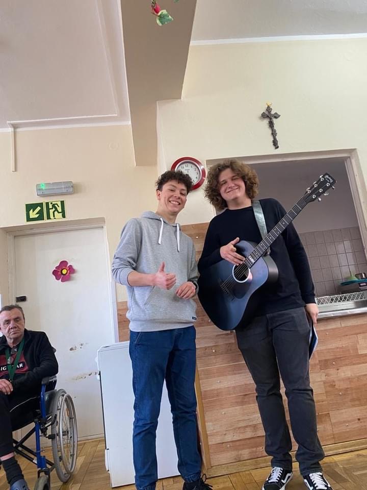 Sekcja charytatywna SU przygotowała słodki poczęstunek, przy którym podopieczni placówki mogli przysłuchiwać się śpiewowi naszego szkolnego artysty - Alana Cymbalisty - któremu serdecznie gratulujemy udanego występu.