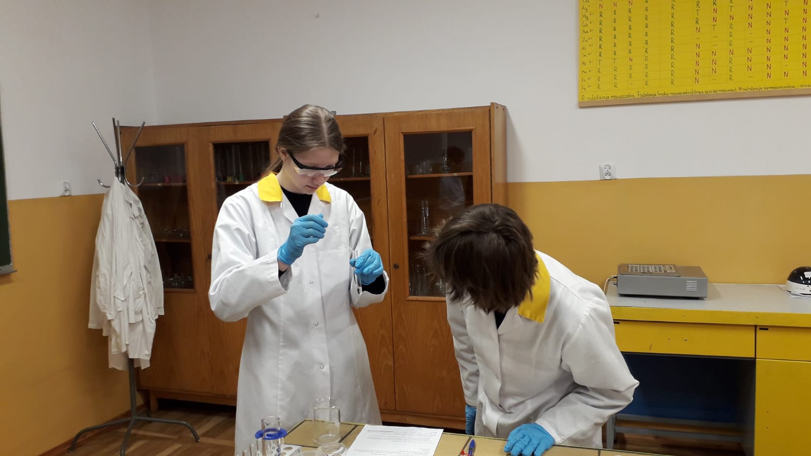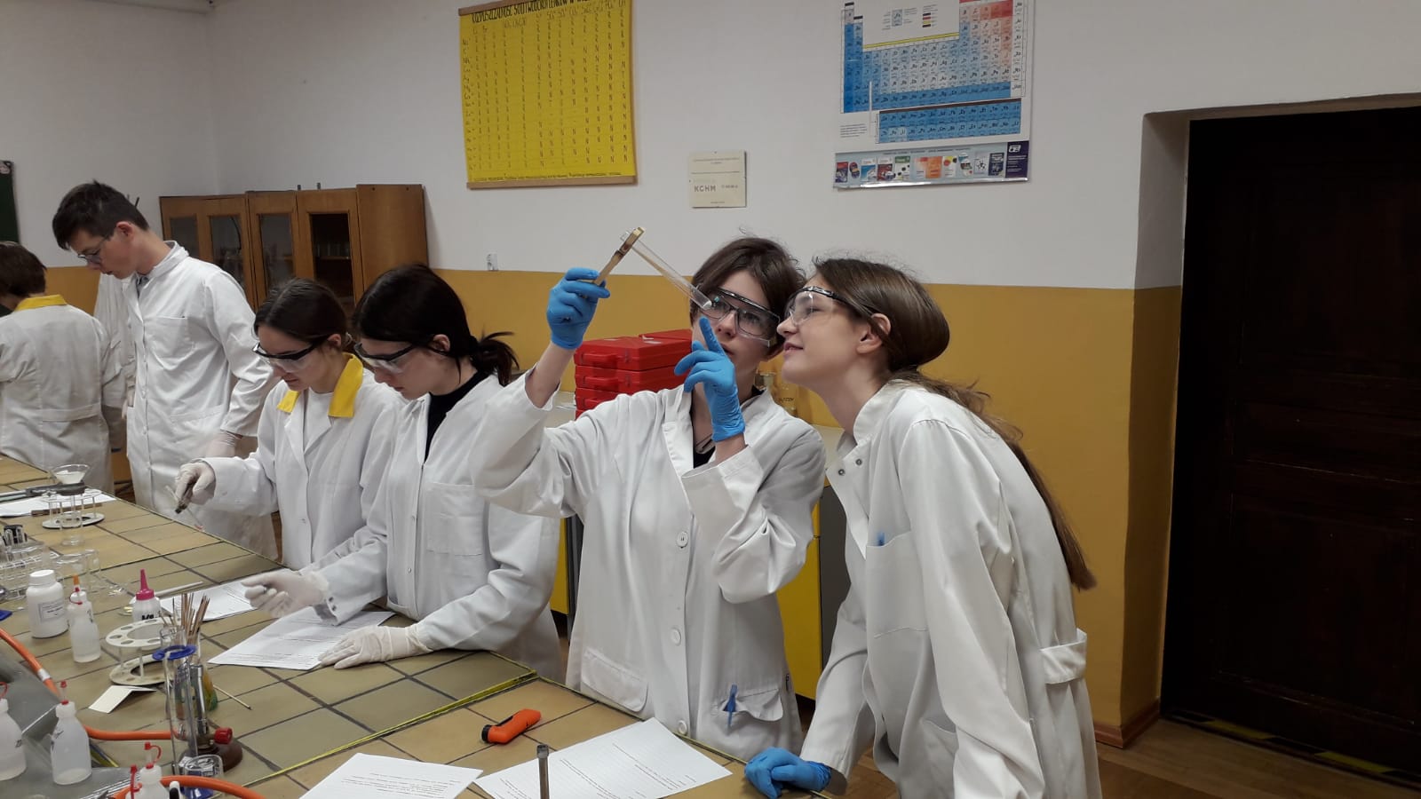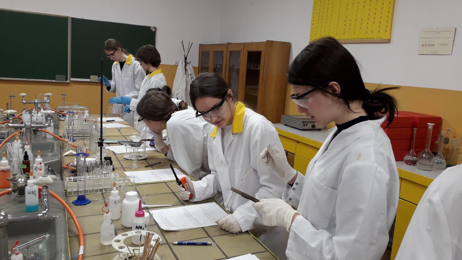 17 maja uczniowie klasy Ic z profilu biologiczno - chemicznego pod czujnym okiem nauczyciela chemii wykonali samodzielnie szereg doświadczeń obrazujących właściwości związków nieorganicznych. Zajęcia podsumowały trudny dział pt.;" Systematyka" i były doskonałą powtórką przed czekającą uczniów pracą klasową. Mamy nadzieję, że po zajęciach laboratoryjnych wiele trudnych zagadnień zostało rozjaśnionych. Uczniom, życzymy na pracy przysłowiowego połamania piór.
