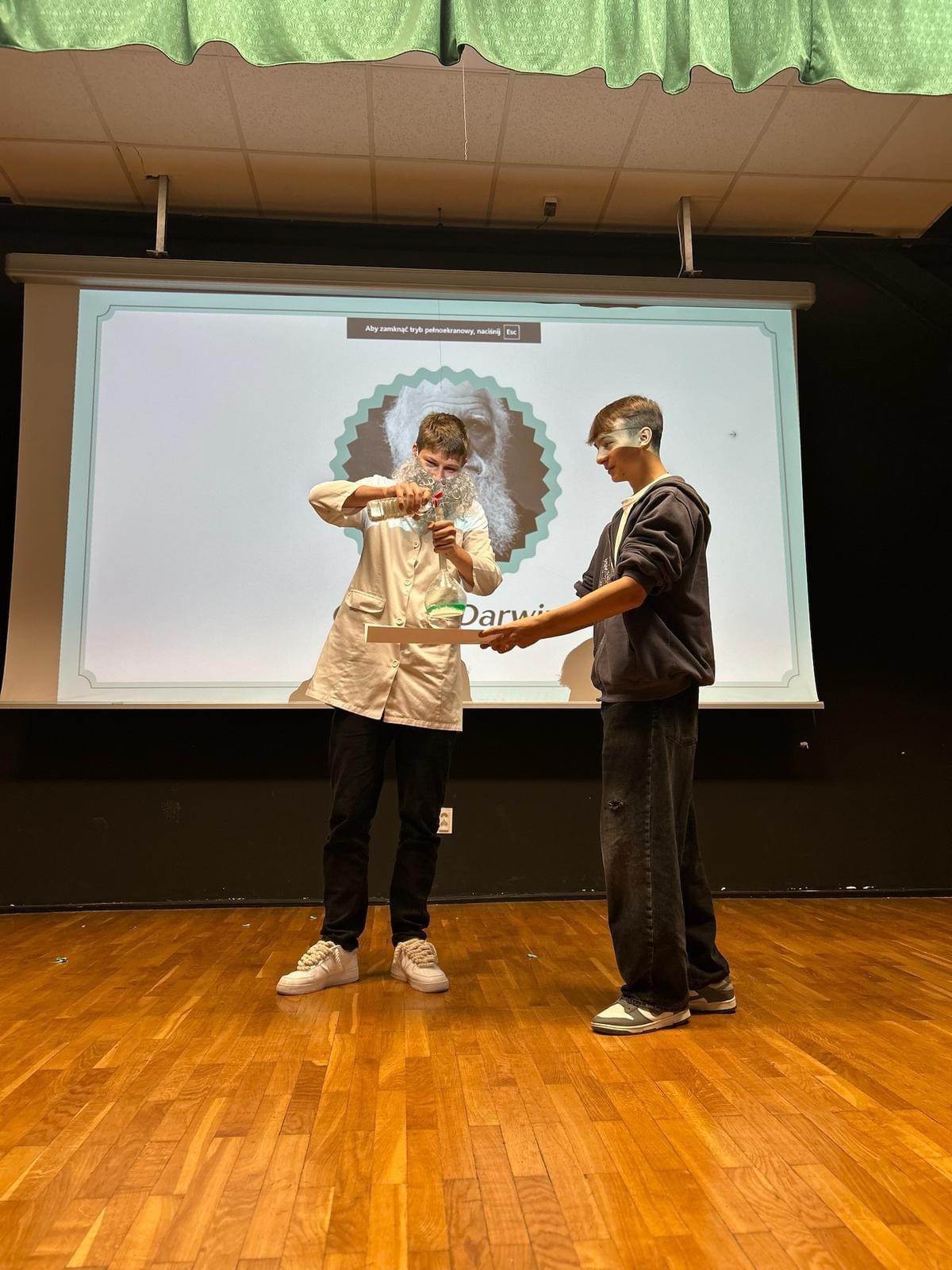 24 października obchodziliśmy DZIEŃ NAUKI👩🔬🧬⚗️🔬🔭🧠, który przepełniony był fantazyjnymi kostiumami, eksperymentami i prawdziwą pasją do wiedzy. Każda klasa wylosowała słynnego naukowca, przebrała się za niego i przygotowała wybrany eksperyment. To była świetna okazja, by uczniowie mogli wcielić się w postaci, które zmieniły bieg historii nauki, oraz sami spróbowali zgłębiać naukowe tajemnice. W trakcie Dnia Nauki uczniowie nie tylko prezentowali eksperymenty, ale też sami mogli wypróbować różne doświadczenia. Korytarze szkolne wypełniły się małymi laboratoriami, a atmosfera była pełna radosnego odkrywania.