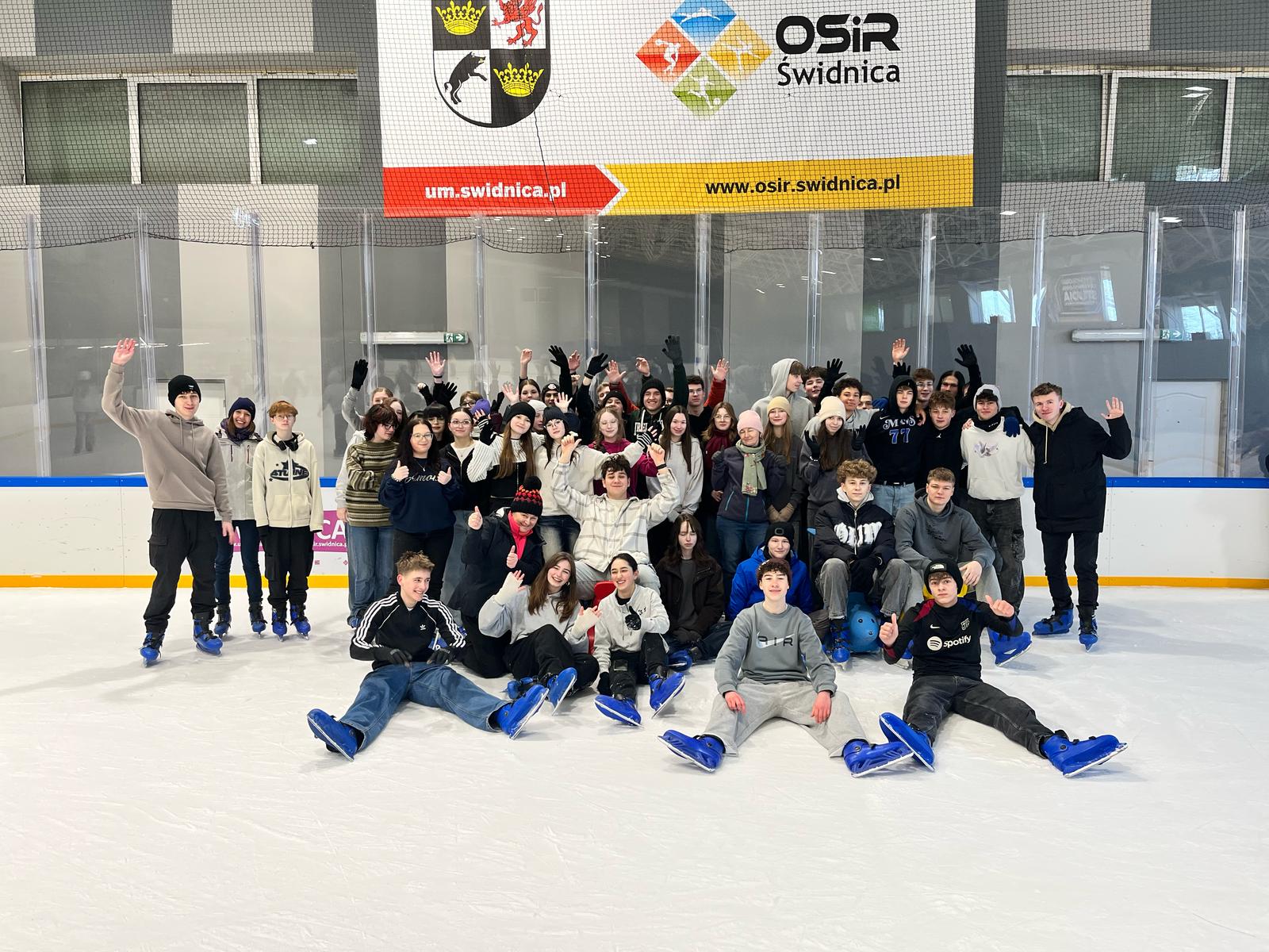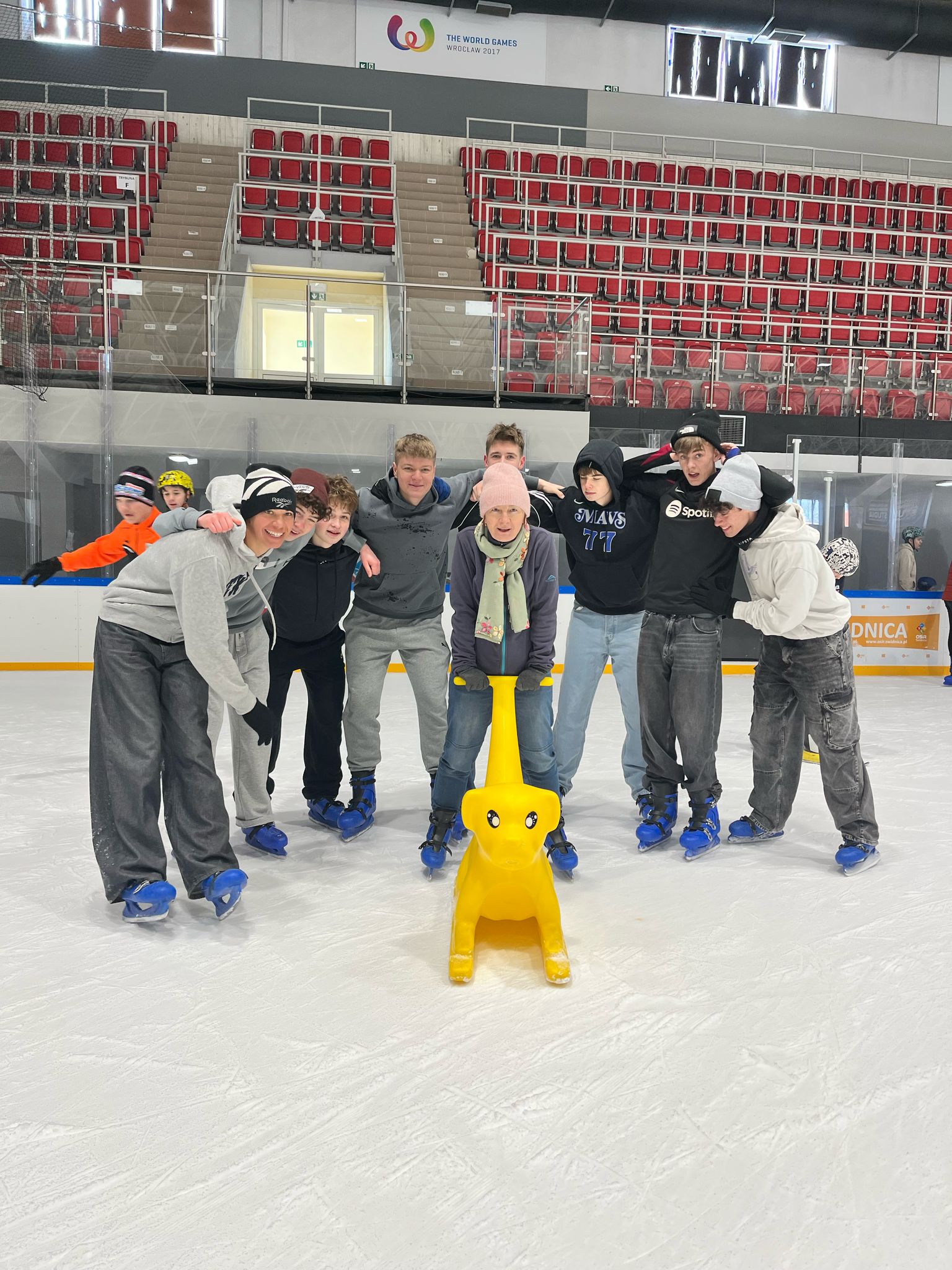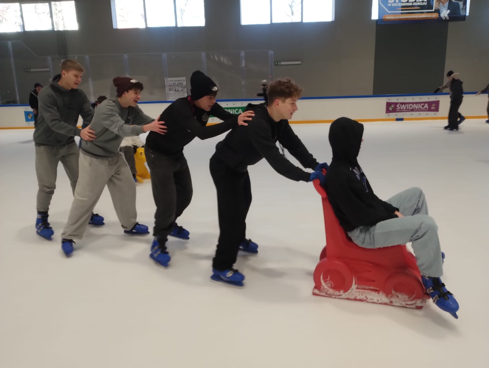 Wielu uczniów stawiających pierwsze kroki na lodzie mogło liczyć na cenne wskazówki i pomoc kolegów. Poza nauką zajęcia wypełniła super zabawa, która zintegrowała oba zespoły klasowe.
