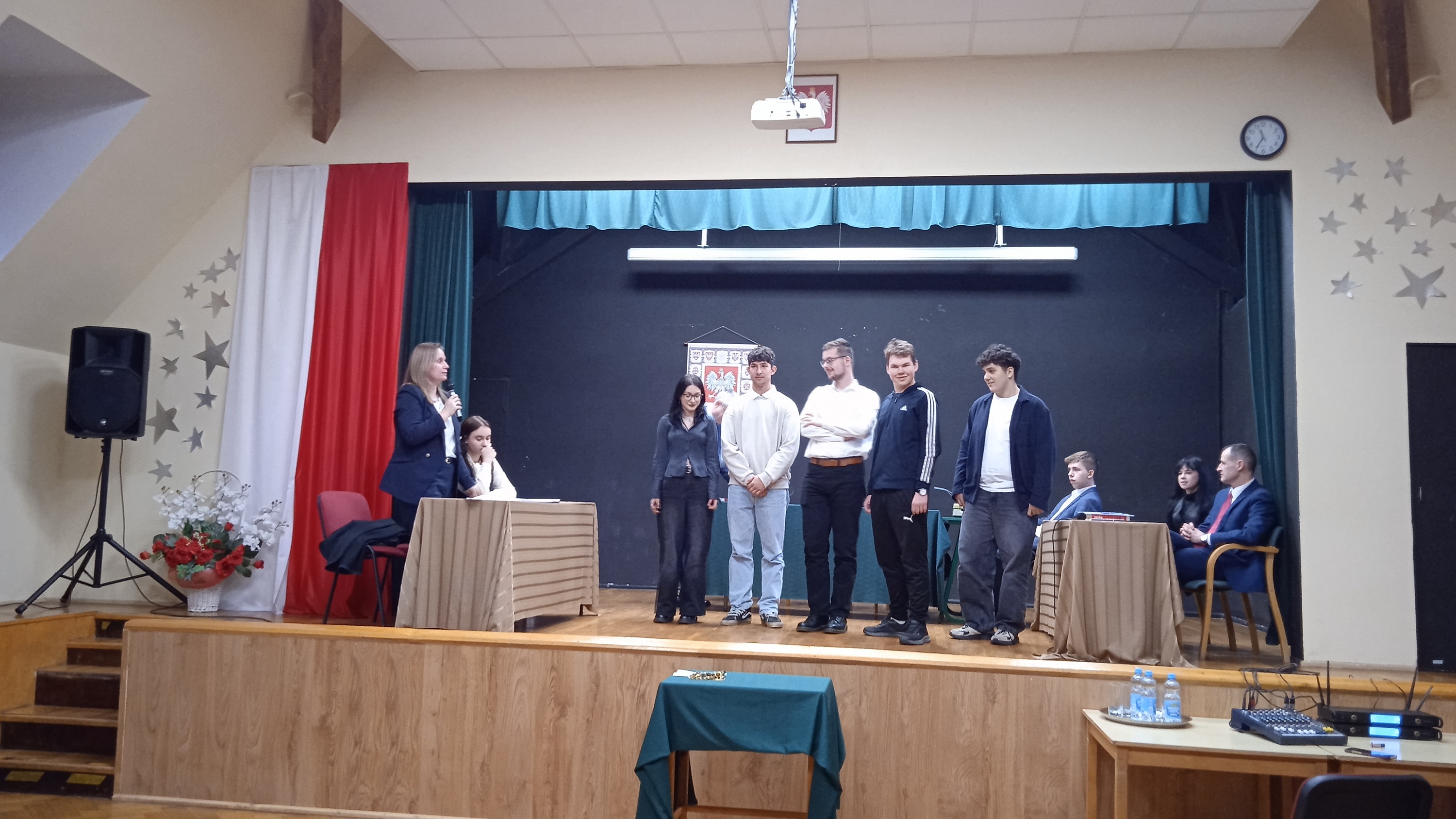 O tym, jak ważnym zagadnieniem jest przestrzeganie prawa, przekonali się uczniowie naszego liceum podczas spotkania, 13 marca z zaproszonymi gosćmi: Prezes Sądu Rejonowego w Jaworze - SSR Joanna Termena - Maciejewska, sędzia Kowalczyk Tadeusz, adwokat Arek Grabowski oraz Komornik Sądowy Michał Suchcicki.