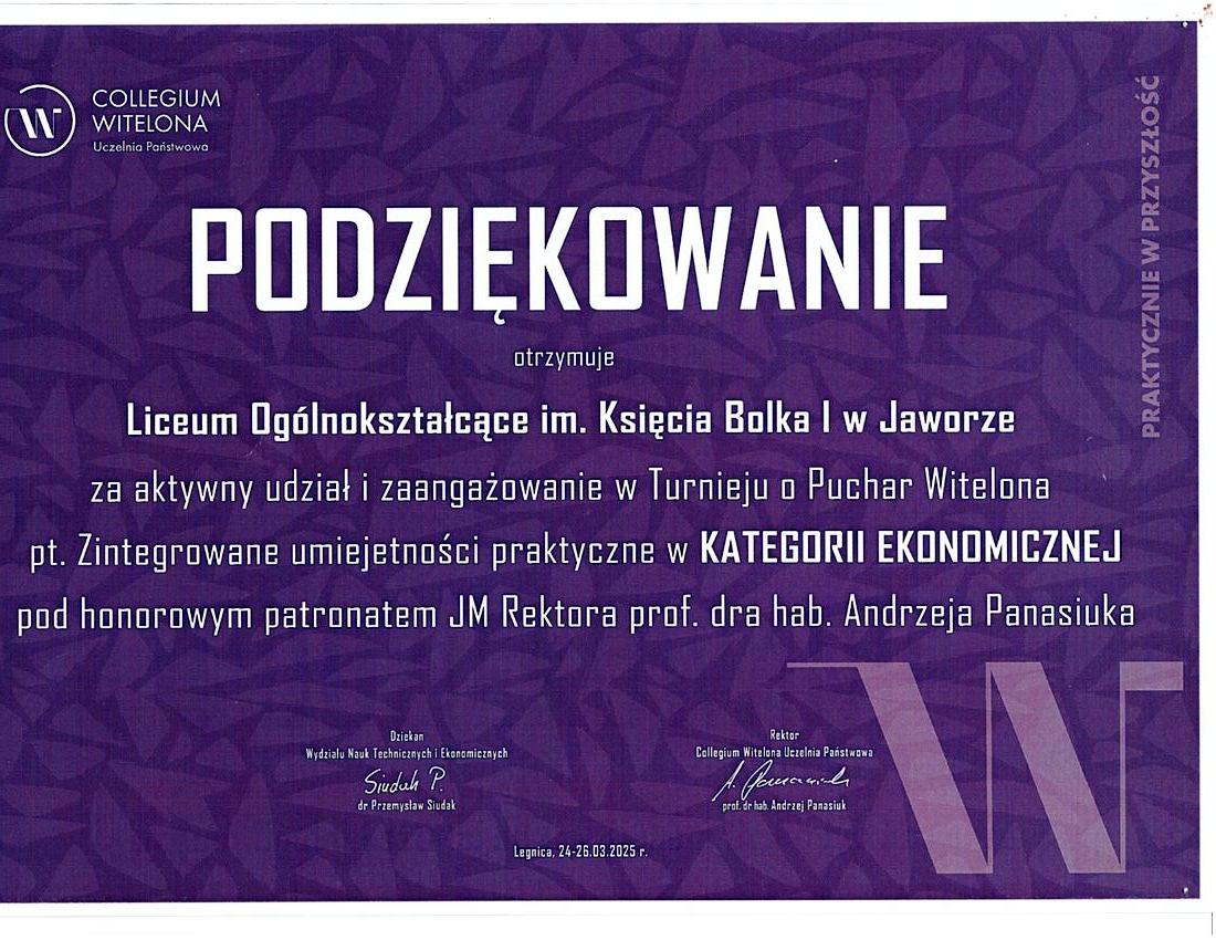 We wtorek, 25 marca drużyna składająca się z sześciu uczniów klasy 2A wzięła udział w turnieju o Puchar Witelona. Był to prestiżowy konkurs, który stanowił wyznanie nie tylko pod względem matematycznym, ale także technicznym i logistycznym. Podczas zawodów uczestnicy musieli zmierzyć się z szeregiem konkurencji wymagających obliczeń i rozwiązywania problemów praktycznych. Musieli także zmierzyć się z testami wymagającymi szybkiego myślenia i podejmowania decyzji. Nasza drużyna wykazała się dużą determinacją i umiejętnością pracy w grupie, a udział w zawodach był dla nich cennym doświadczeniem.