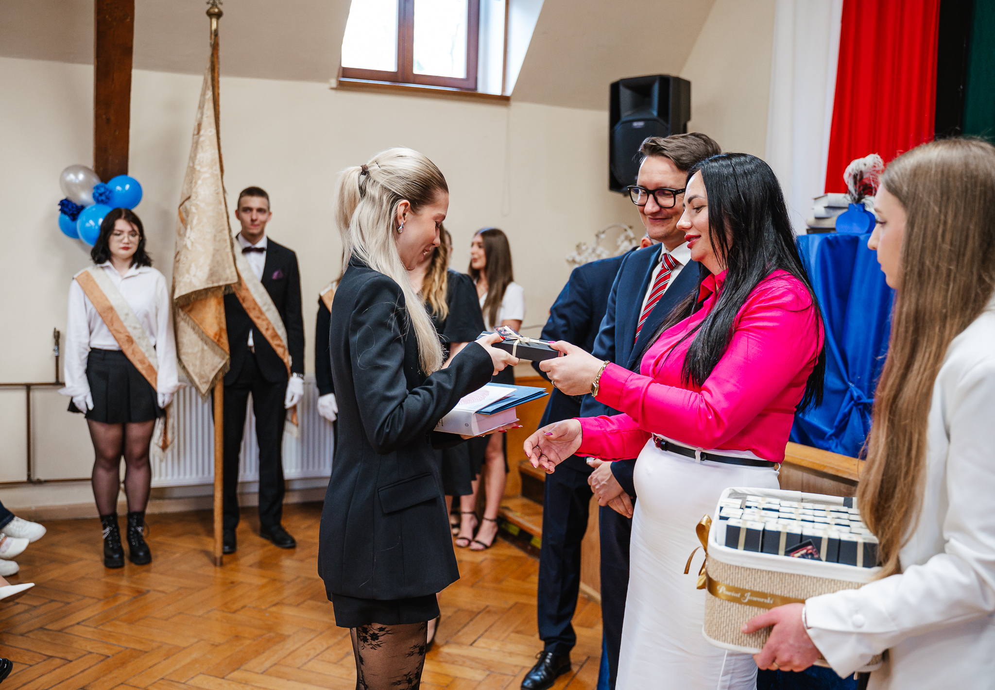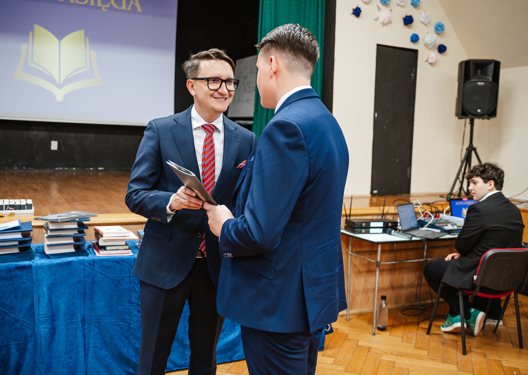 Szczególne wyróżnienie przypadło dwóm uczniom – Grzegorzowi Królowi oraz Stanisławowi Dziędziole, którzy zostali wpisani do Złotej Księgi Szkoły za swoje wybitne osiągnięcia edukacyjne, zaangażowanie oraz postawę godną naśladowania. Ich sukcesy to dowód na to, że pasja, praca i wytrwałość przynoszą wspaniałe rezultaty. Gratulujemy im serdecznie i życzymy dalszych sukcesów na nowych ścieżkach!