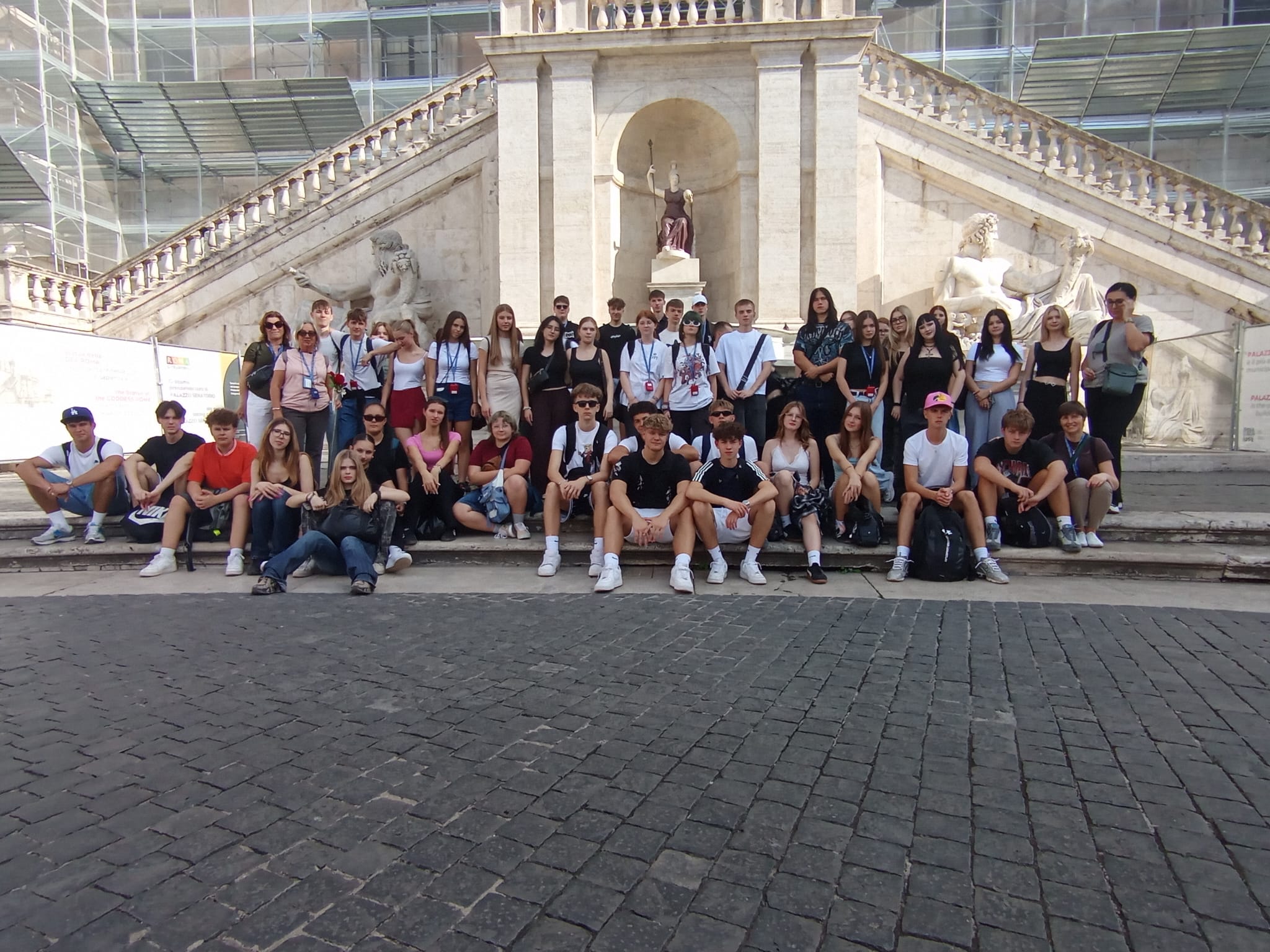 Uczniowie naszego liceum w dniach 5 - 11 października 2025 roku odbyli podróż do Włoch. Nasza szkolna wycieczka była doświadczeniem, którego długo nie zapomnimy. W ciągu kilku intensywnych i pełnych emocji dni odwiedziliśmy cztery niezwykłe miasta: Wenecję, Bolonię, Florencję i Rzym. Każde z nich zaoferowało coś wyjątkowego, pozwalając wszystkim lepiej poznać historię, kulturę i duszę Italii. Podróż rozpoczęliśmy w Wenecji, mieście kanałów i gondoli. Spacerując wąskimi uliczkami i przechodząc przez niezliczone mostki, czuliśmy się tak, jakbyśmy znaleźli się w świecie zawieszonym między snem a rzeczywistością. Spacer na Placu św. Marka, obok Bazyliki i Pałacu Dożów uświadomił nam, jak cenne jest dziedzictwo artystyczne tego miejsca. Wenecja nauczyła nas doceniać kruchość piękna i harmonię człowieka z naturą. Drugim przystankiem była Bolonia, znana z jednej z najstarszych uczelni świata, długich portyków i znakomitej kuchni. Tu mogliśmy poczuć atmosferę prawdziwego miasta akademickiego. W Bolonii chyba wszyscy, młodzież i opiekunowie, zaczęli myśleć o przyszłości i marzeniach z nowej perspektywy. We Florencji z kolei wszystkich uczestników zachwyciła potęga sztuki i ducha renesansu - np. katedra Santa Maria del Fiore, wieża Giotta, już kościół Santa Croce czy Most Złotników. To niezwykłe uczucie – stanąć twarzą w twarz z historią i zrozumieć, że sztuka i architektura to nie tylko przeszłość, lecz także źródło inspiracji dla przyszłych pokoleń. Ostatnim etapem naszej podróży był Rzym – serce starożytnego świata i centrum chrześcijaństwa. Koloseum, Forum Romanum, Fontanna di Trevi i Bazylika św. Piotra zrobiły na nas ogromne wrażenie. Spacerując po ruinach i monumentalnych placach, mogliśmy niemal poczuć oddech historii. Rzym nauczył nas, że aby budować przyszłość, warto rozumieć i szanować przeszłość. Ta wycieczka była nie tylko podróżą w przestrzeni, ale też w głąb nas samych. Nauczyliśmy się współpracy, odpowiedzialności i otwartości na innych. Zyskaliśmy nie tylko wiedzę, lecz także wspomnienia, które pozostaną z nami na długo. Była to prawdziwa lekcja życia – poza szkolną ławką, pełna emocji, śmiechu i zachwytu nad światem.