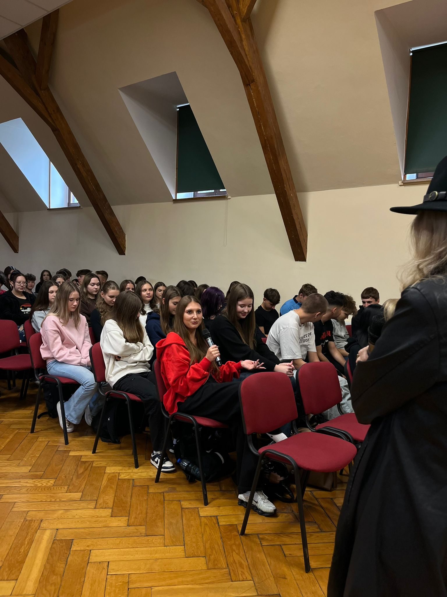 Na zaproszenie dyrektora Waldemara Szastaka spotkała się z uczniami, by podzielić się swoją artystyczną drogą i pięknymi wspomnieniami ze szkolnych lat. Podczas spotkania zaśpiewała trzy utwory, a także włączyła młodzież do wspólnej zabawy 🎤🎶💃