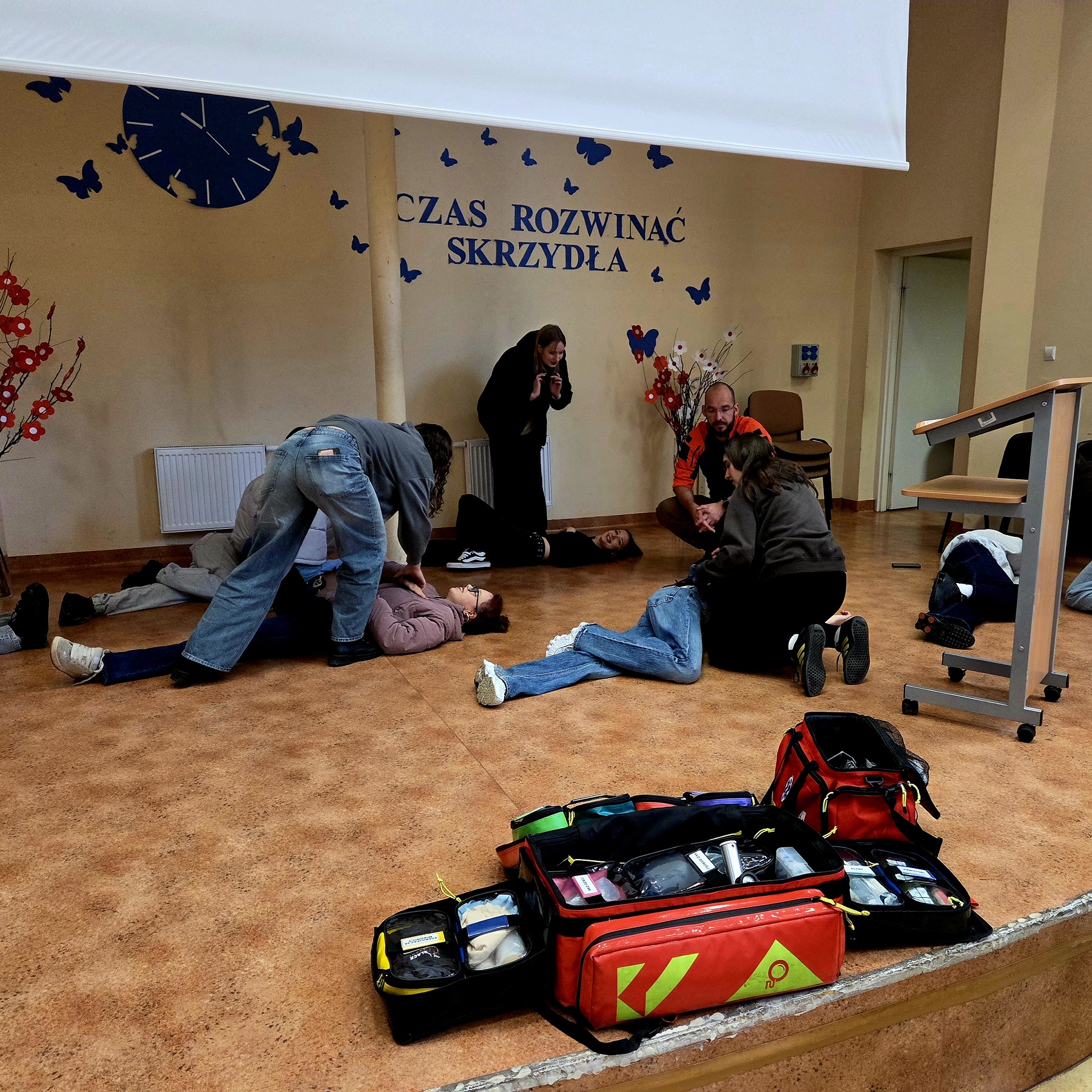 W poniedziałek, 24 listopada klasa 1B wzięła udział w kursie pierwszej pomocy przedmedycznej, którego celem było zdobycie wiedzy oraz praktycznych umiejętności związanych z udzielaniem pomocy osobom poszkodowanym w sytuacjach zagrożenia życia i zdrowia.