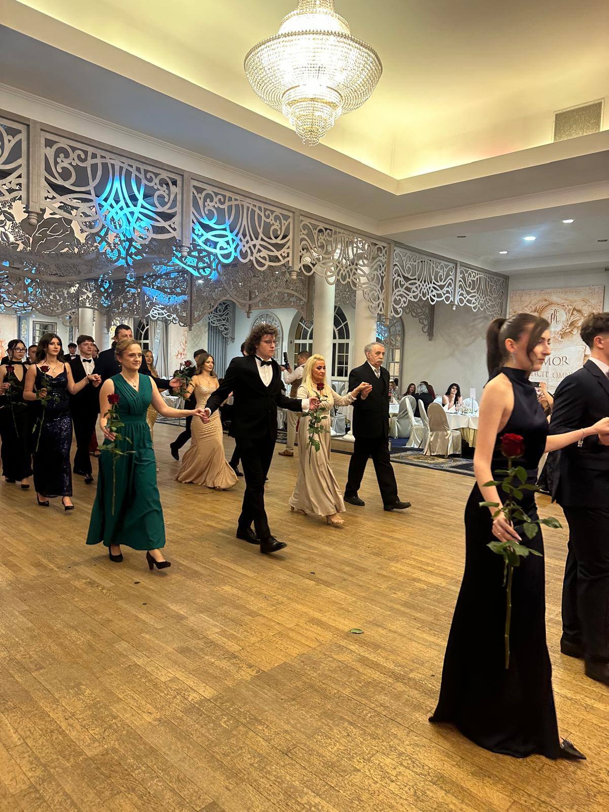 Kulminacyjnym momentem wieczoru był tradycyjny polonez, który maturzyści zatańczyli z dumą i elegancją, wzbudzając podziw zgromadzonych gości i podkreślając uroczysty charakter wydarzenia.